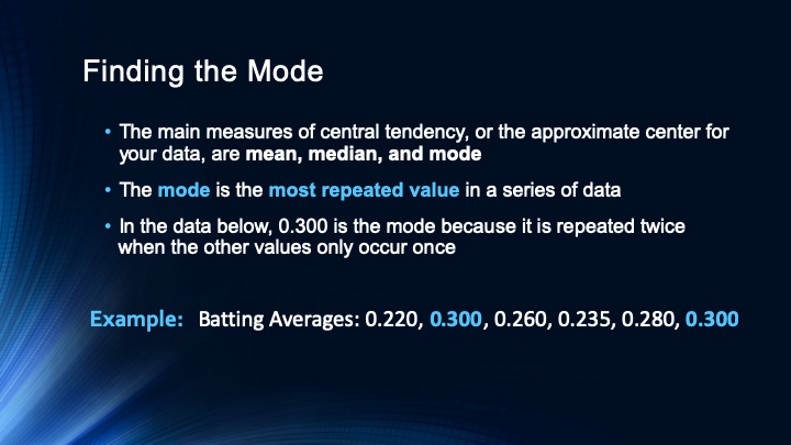 September 8, 2019January 6, 2020 khuntzberry Measures of Central Tendency The video below reviews the measures of central tendency: mean, median, and mode. Code and Data Available Here Slides Related