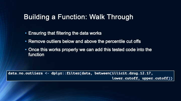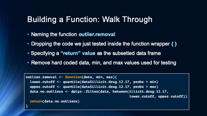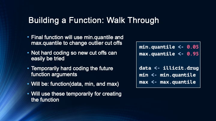 This video reviews how to build a simple user-defined function from start to finish. This will show you how to create a simple outlier removal function as well as check and debug it.