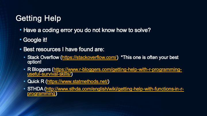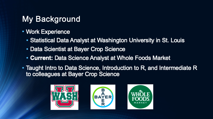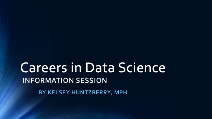 Below is an informational video about careers in the Data Science field. In this session I give general information about my experience in data science, explain basic skills and methods many data scientists use, and answer student questions.
