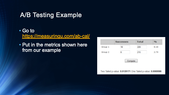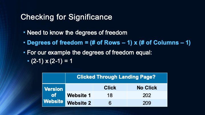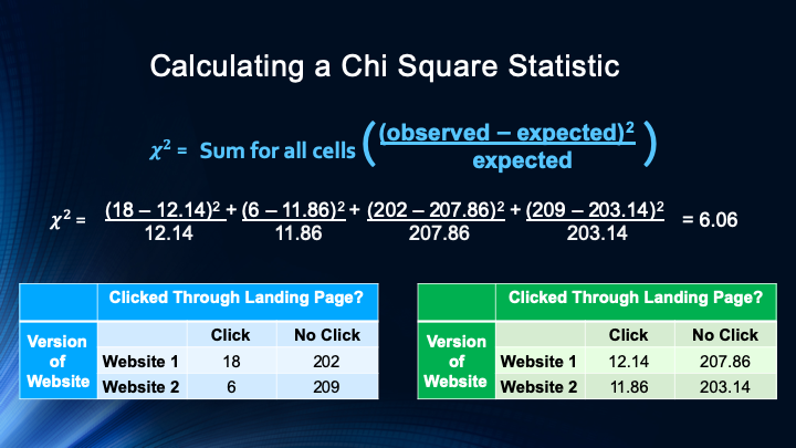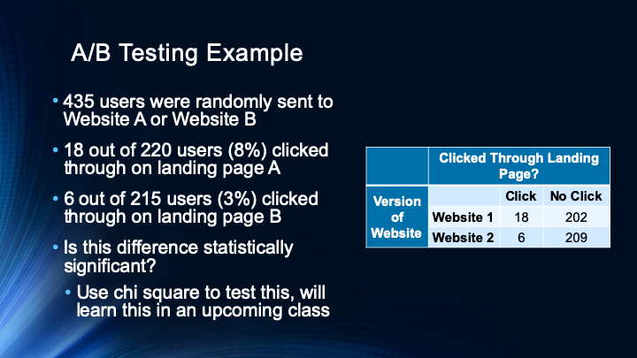 This video gives a second full example of a chi square analysis. This example explains how chi square could be used to analyze A/B test data where two versions of a website are compared.