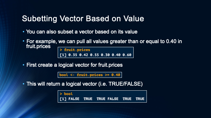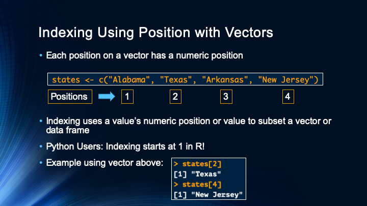 This video explains how to perform indexing with vectors in R. We show how to do this using a value’s position or its contents.