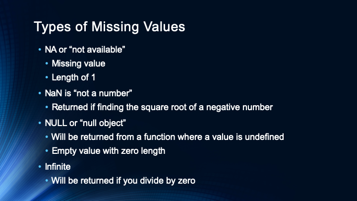 This video explains the differences between the different types of missing values in R. I also explain how to replace values in R including non-missing values, missing values, and column names.