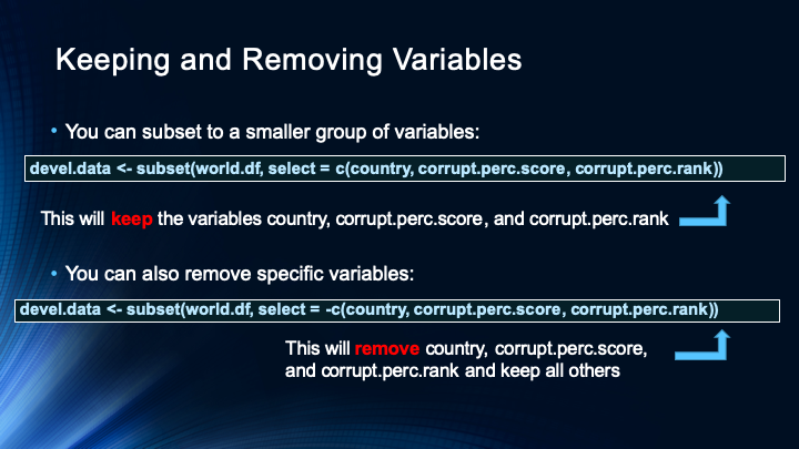 This video covers how to subset data in R based on values using the subset function. I also cover how to modify the arguments of the subset function to select a smaller subset of columns from a data frame.