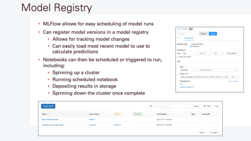 In this class I explain the basics of the package MLFlow. MLFlow is by far my favorite package for tracking and maintaining machine learning models during training and in production. It is simple and easy to use and brings great value particularly in the model training process. It is available in multiple languages inside a Spark platform or even with regular Python or R on your local computer.