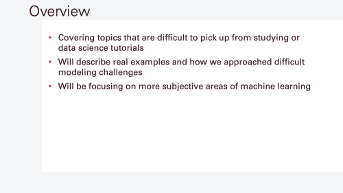 This class covers useful concepts that often are not covered in data science books. We cover the following topics: