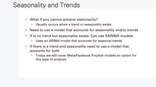 In this video, I review the basics of stationarity covered in my previous class. Afterwards, I do a deeper dive into time series modeling including: